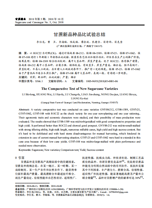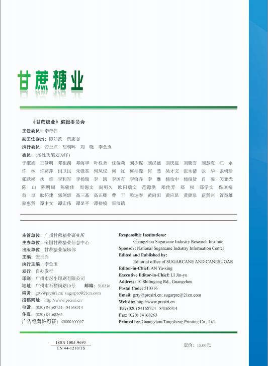 《甘蔗糖業》創刊于1972 年,由中國輕工業聯合會主管,中國糖業協會、全國甘蔗糖業信息中心和廣州甘蔗糖業研究所主辦,是國內甘蔗制糖行業唯一的全國性科技期刊,是國內制糖行業中創刊最早、覆蓋面最廣的綜合性科技期刊,具權威性、知識性、可讀性、實用性和前瞻性。被收錄為“中國科技論文統計源期刊”(中國科技核心期刊),并被“萬方數據—數字化期刊群”和《中國核心期刊( 遴選) 數據庫》、《中國學術期刊綜合評價數據庫》和《中國科學引文數據庫》等相關數據庫收錄,已入編由清華大學主編的《中國學術期刊( 光盤版)》,曾獲中國輕工總會優秀科技期刊二等獎。