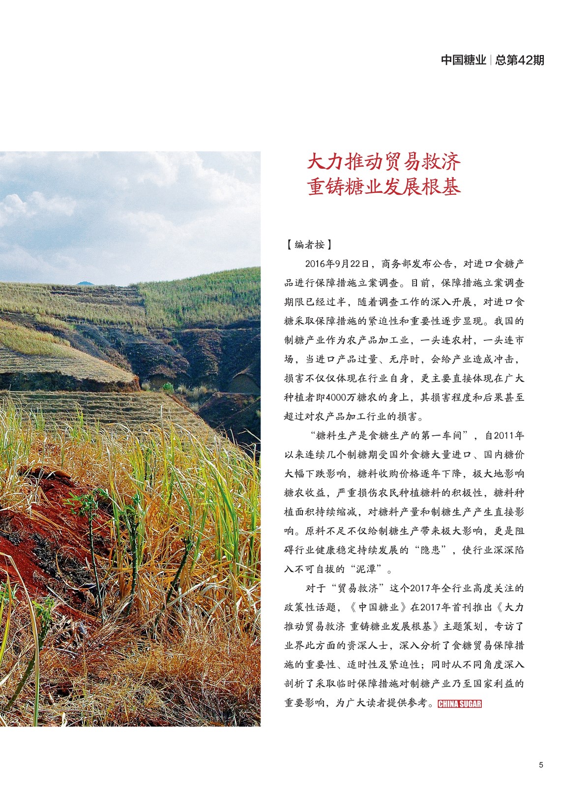 《中國糖業》由中國糖業協會主辦,是面向各級政府主管部門、中國糖業協會會員單位的內部刊物。《中國糖業》為雙月刊,以正確引導輿論方向,提供信息服務為宗旨,深入剖析評介行業發展趨勢、企業的改革與管理、糖業宏觀政策和產業未來規劃、行業重大熱點問題,并及時發布國際國內市場動態、通報協會工作等,力爭通過形式多樣的深度報道,更具專業性、權威性、前瞻性的分析文章,引領廣大讀者及時、快捷的掌握行業動態和發展趨勢。為行業參與各方搭建信息溝通的橋梁,并為其提供全面、細致、專業、權威的信息服務。