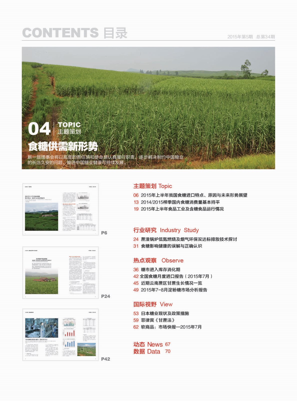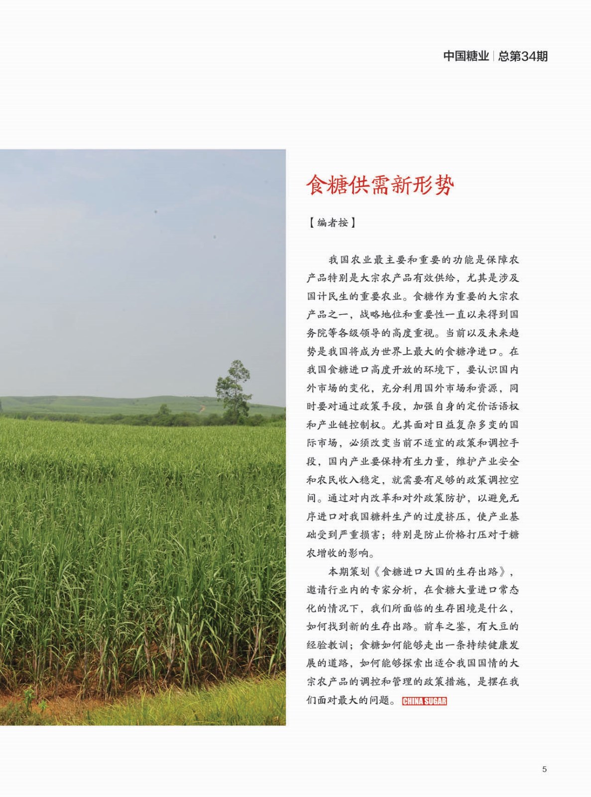 《中國糖業(yè)》由中國糖業(yè)協(xié)會主辦,是面向各級政府主管部門、中國糖業(yè)協(xié)會會員單位的內(nèi)部刊物?!吨袊菢I(yè)》為雙月刊,以正確引導(dǎo)輿論方向,提供信息服務(wù)為宗旨,深入剖析評介行業(yè)發(fā)展趨勢、企業(yè)的改革與管理、糖業(yè)宏觀政策和產(chǎn)業(yè)未來規(guī)劃、行業(yè)重大熱點問題,并及時發(fā)布國際國內(nèi)市場動態(tài)、通報協(xié)會工作等,力爭通過形式多樣的深度報道,更具專業(yè)性、權(quán)威性、前瞻性的分析文章,引領(lǐng)廣大讀者及時、快捷的掌握行業(yè)動態(tài)和發(fā)展趨勢。為行業(yè)參與各方搭建信息溝通的橋梁,并為其提供全面、細致、專業(yè)、權(quán)威的信息服務(wù)。