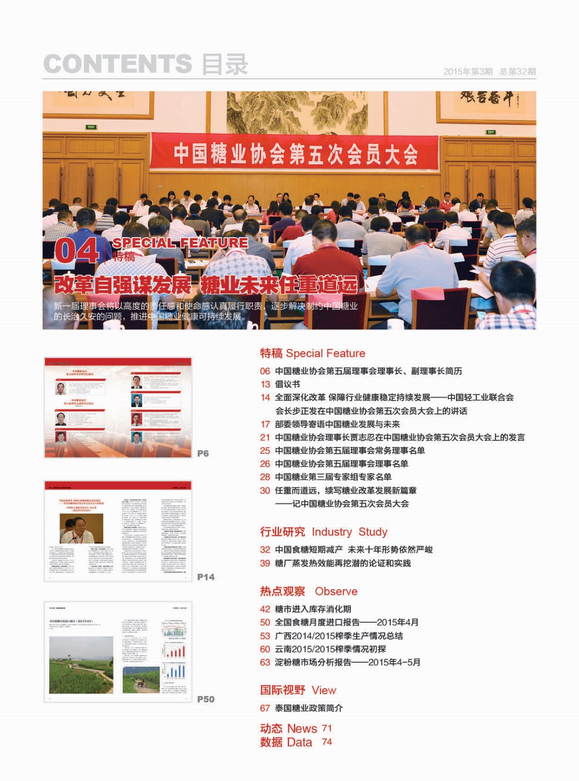 中國糖業》由中國糖業協會主辦,是面向各級政府主管部門、中國糖業協會會員單位的內部刊物。《中國糖業》為雙月刊,以正確引導輿論方向,提供信息服務為宗旨,深入剖析評介行業發展趨勢、企業的改革與管理、糖業宏觀政策和產業未來規劃、行業重大熱點問題,并及時發布國際國內市場動態、通報協會工作等,力爭通過形式多樣的深度報道,更具專業性、權威性、前瞻性的分析文章,引領廣大讀者及時、快捷的掌握行業動態和發展趨勢。為行業參與各方搭建信息溝通的橋梁,并為其提供全面、細致、專業、權威的信息服務。