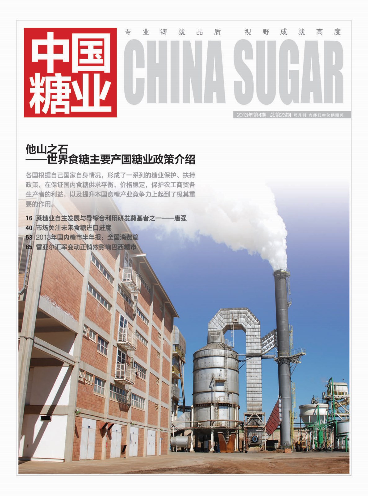 《中國糖業》由中國糖業協會主辦,是面向各級政府主管部門、中國糖業協會會員單位的內部刊物。《中國糖業》為雙月刊,以正確引導輿論方向,提供信息服務為宗旨,深入剖析評介行業發展趨勢、企業的改革與管理、糖業宏觀政策和產業未來規劃、行業重大熱點問題,并及時發布國際國內市場動態、通報協會工作等,力爭通過形式多樣的深度報道,更具專業性、權威性、前瞻性的分析文章,引領廣大讀者及時、快捷的掌握行業動態和發展趨勢。為行業參與各方搭建信息溝通的橋梁,并為其提供全面、細致、專業、權威的信息服務。