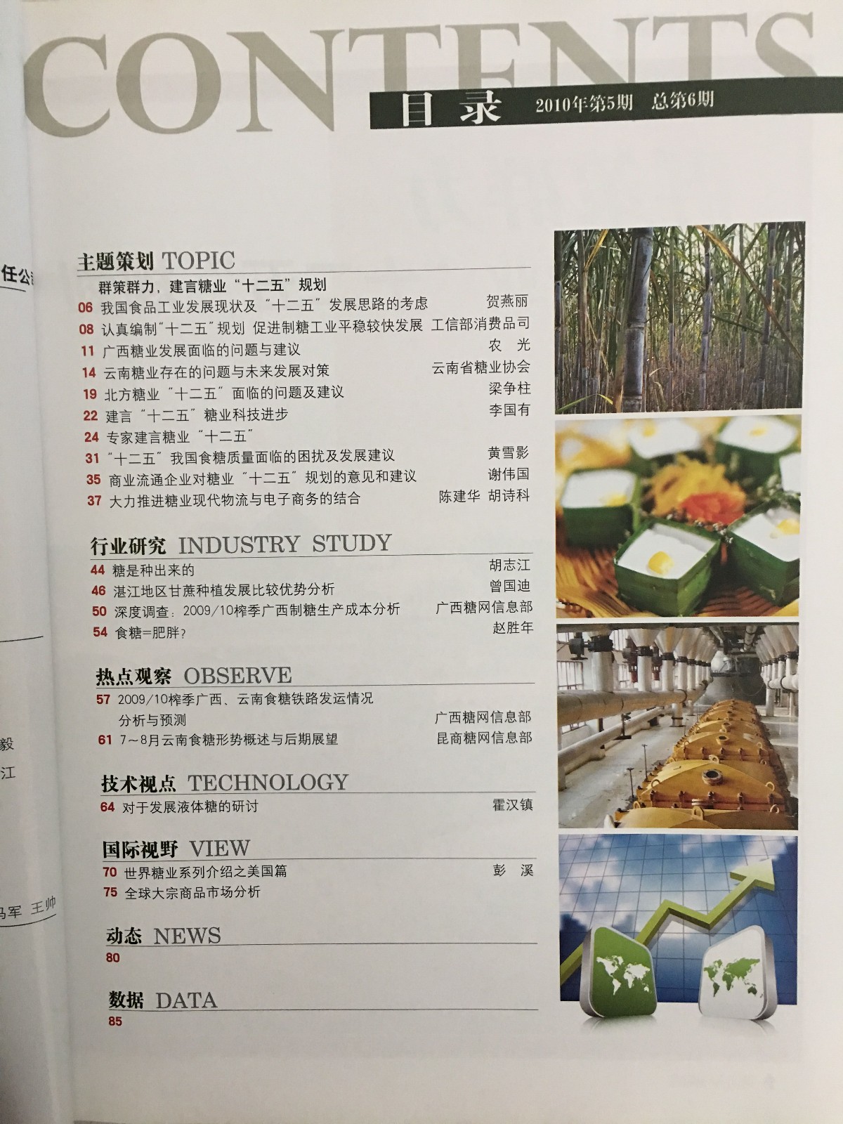 《中國糖業》由中國糖業協會主辦,是面向各級政府主管部門、中國糖業協會會員單位的內部刊物。《中國糖業》為雙月刊,以正確引導輿論方向,提供信息服務為宗旨,深入剖析評介行業發展趨勢、企業的改革與管理、糖業宏觀政策和產業未來規劃、行業重大熱點問題,并及時發布國際國內市場動態、通報協會工作等,力爭通過形式多樣的深度報道,更具專業性、權威性、前瞻性的分析文章,引領廣大讀者及時、快捷的掌握行業動態和發展趨勢。為行業參與各方搭建信息溝通的橋梁,并為其提供全面、細致、專業、權威的信息服務。