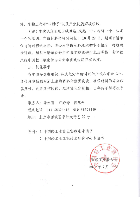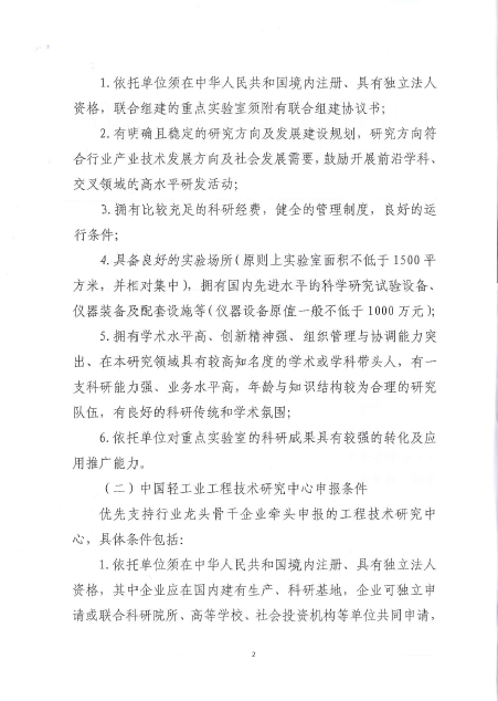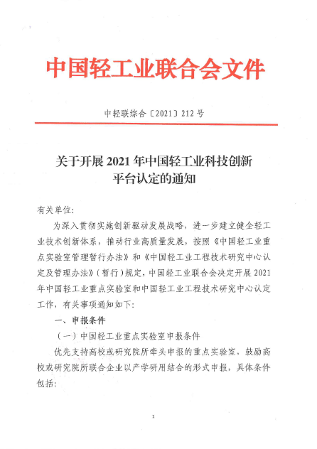 關于開展2021年中國輕工業科技創新平臺認定的通知