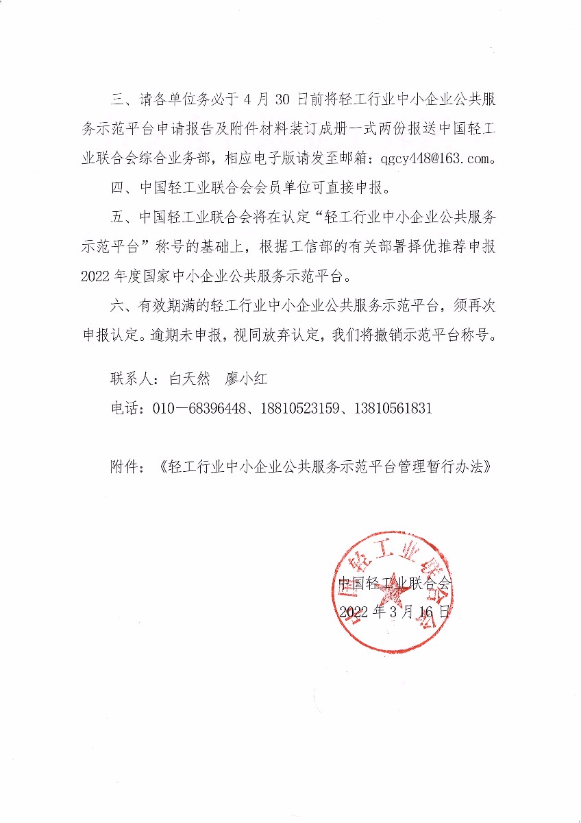 關于組織開展2022年度輕工行業中小企業公共服務示范平臺認定工作的通知