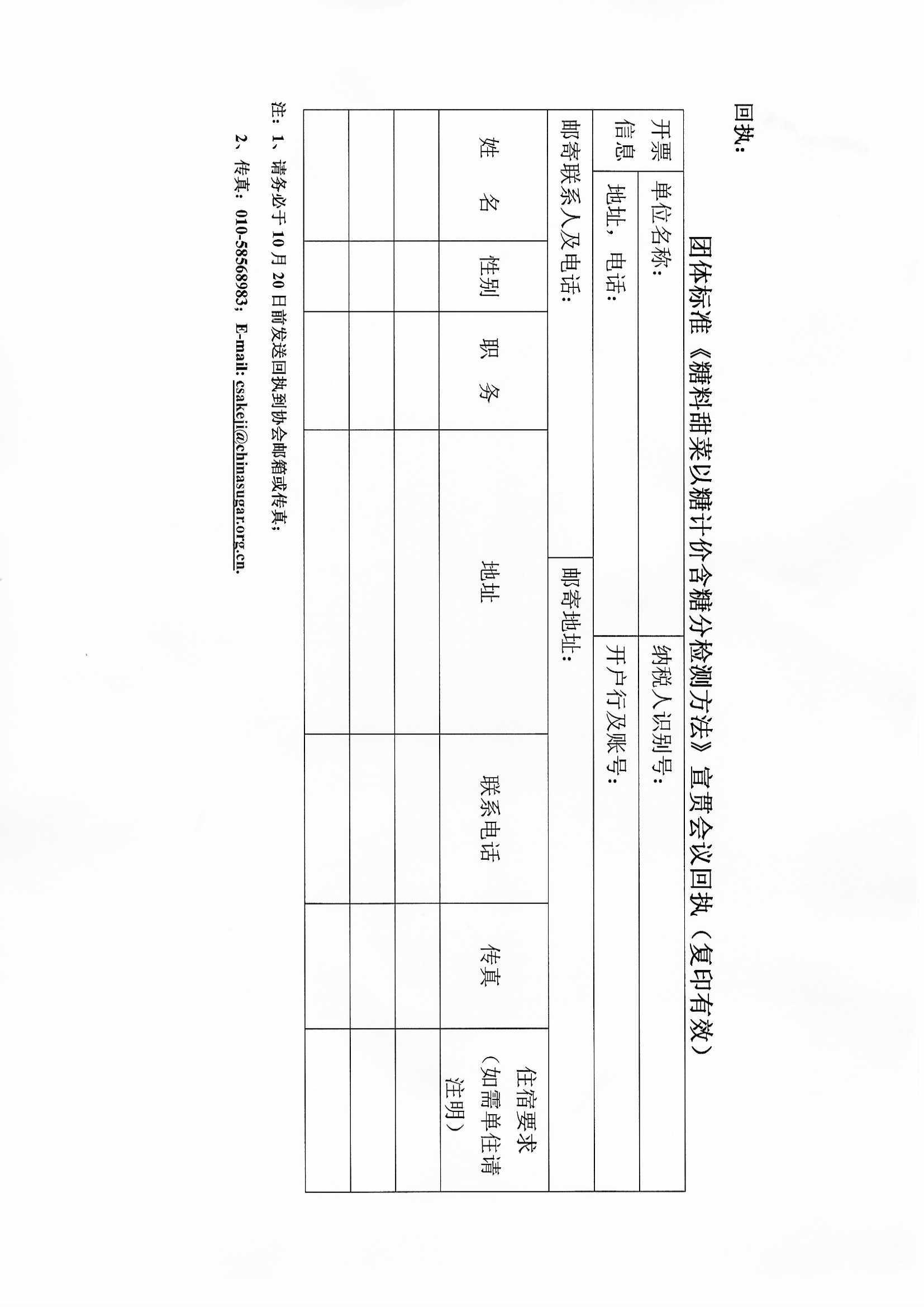 關(guān)于召開團(tuán)體標(biāo)準(zhǔn)《糖料甜菜以糖計價含糖分檢測方法》宣貫會議通知