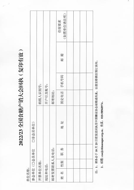 關(guān)于召開(kāi)2022/23全國(guó)食糖產(chǎn)銷(xiāo)大會(huì)的通知