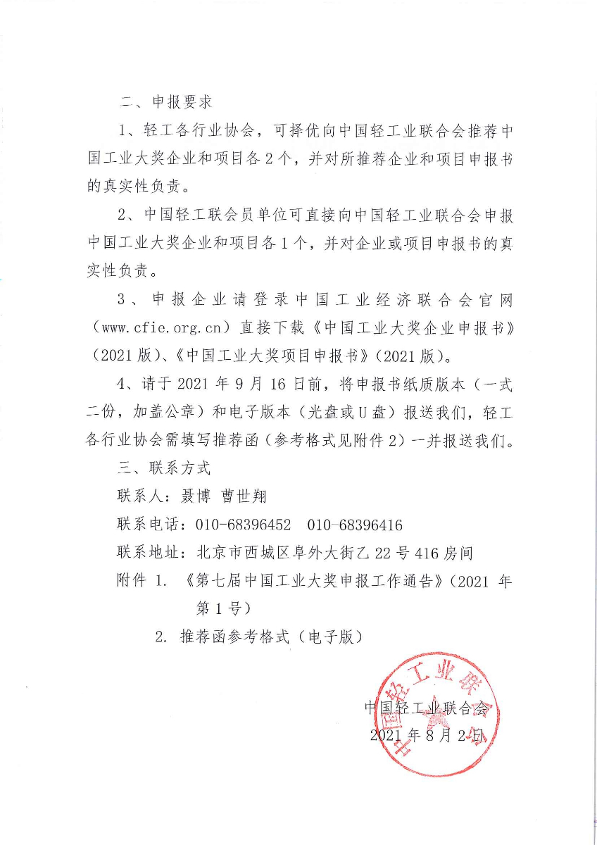 關于征集第七屆中國工業大獎申報企業 (項目)的通知