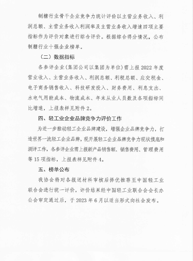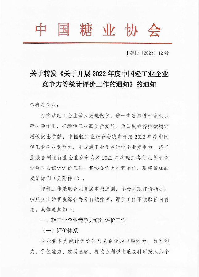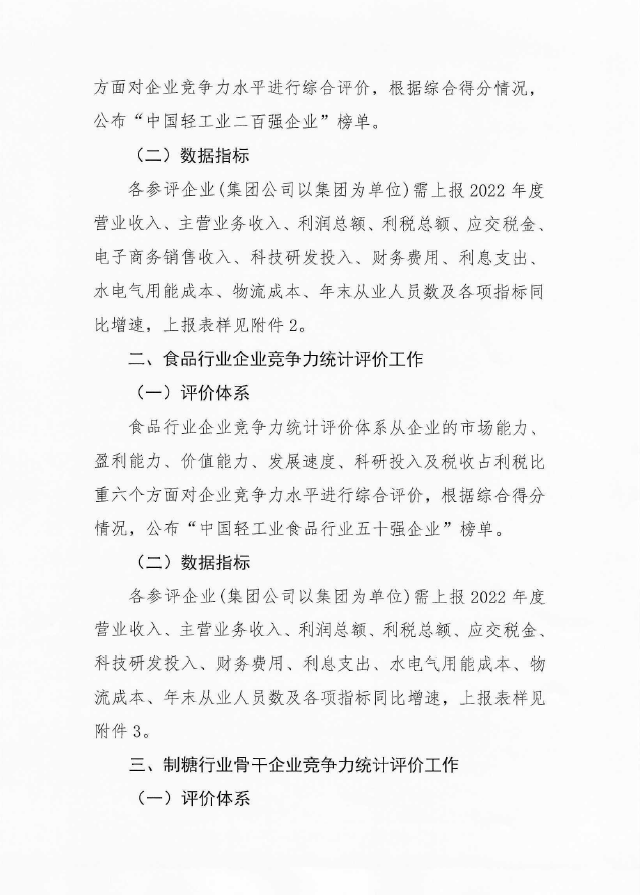 關于轉發《關于開展2022年度中國輕工業企業競爭力等統計評價工作的通知》的通知